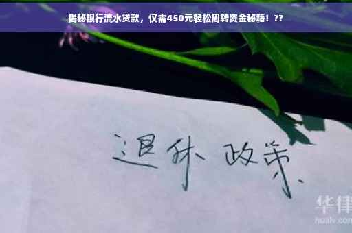 通过本文的介绍,我们了解了银行流水贷款的相关知识,以及如何通过仅需450元的操作轻松获得贷款,在银行流水贷款的申请过程中,借款人需要注意选择信誉良好的贷款机构、提供真实的材料、仔细阅读合同条款并按时还款,希望本文能帮助读者更好地了解并应用银行流水贷款这一金融工具,解决资金周转难题。