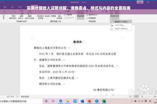 摘要:本文将详细介绍分期购买房产所需的收入证明,包括如何准备、格式要点以及内容细节。通过本文,读者将了解收入证明在购房分期过程中的重要性,以及如何提供准确、完整的收入证明文件,以确保购房流程的顺利进行。文章旨在帮助购房者顺利办理买房分期收入证明,确保顺利购房。