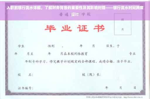 在现代社会,随着就业竞争的日益激烈,求职过程中的各个环节都显得尤为重要,入职前银行流水作为财务背景的重要证明材料,越来越受到企业的关注,本文将详细解读入职前银行流水的含义、作用以及注意事项,帮助求职者更好地了解并准备这一环节,为自己的求职之路加分。