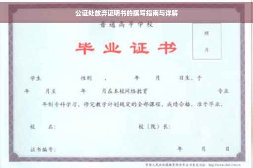 在日常生活中,我们可能会遇到需要放弃某些权益或财产的情况,这时,一份正式的放弃证明书就显得尤为重要,本文将详细介绍公证处放弃证明书的用途、内容、法律效力及注意事项,以帮助读者更好地了解和使用该证明书。
