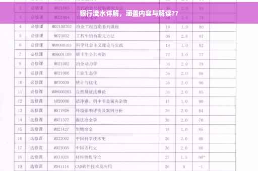 随着金融行业的快速发展,越来越多的人开始关注自己的财务状况,在这个过程中,银行流水作为记录个人或企业资金往来的重要文件,其重要性日益凸显,银行流水都包含哪些内容呢?本文将为您详细介绍,帮助您更好地了解自己的资金流向和财务状况。