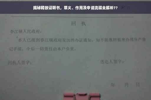 在当今社会,随着法治建设的不断完善,人们在日常生活中可能会遇到各种各样的法律文件,释放证明书是一个重要的法律文件,尤其在刑事司法领域具有举足轻重的地位,本文将详细解析释放证明书的含义、作用以及申请流程,帮助公众更好地了解和认识这一法律文件。