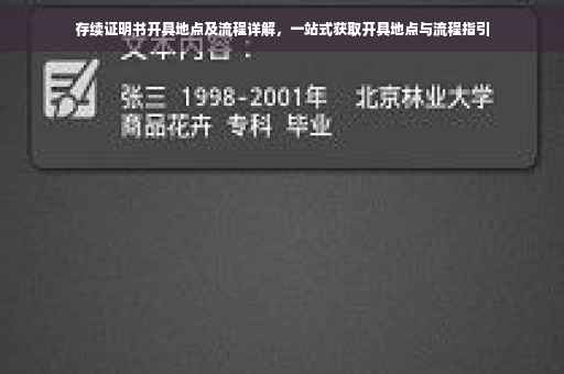 在当今社会,随着经济的繁荣和企业的壮大,各类证明文件的办理流程逐渐受到广泛关注,存续证明书作为一种重要的证明文件,广泛应用于企业运营、个人事务处理等多个领域,本文将为您详细介绍存续证明书的开具地点、流程以及注意事项。