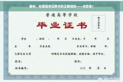 文章解析:关于在医院如何获取证明书的问题。文章指出,想要获取医院的证明书,需要找到正确的部门和人员。应该前往医院的行政部门或相关科室,如病历科、医务科等,找到负责证明的医师或工作人员。具体流程和所需材料可能因医院而异,因此建议提前咨询医院相关部门。文章旨在帮助读者解决在医院拿证明书时的困惑。
