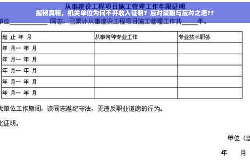 机关单位不开具收入证明的现象背后隐藏着多重问题,其中包括制度上的限制、管理的不规范以及对个人隐私的考虑等,要解决这些问题,机关单位需重新审视其制度和流程,强化内部管理,提升服务质量。