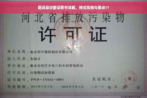 摘要:阳高县诊断证明书是一份重要的医疗证明文件,其格式规范严谨。本文详细解读了诊断证明书的各项内容,包括患者基本信息、诊断结论、医生建议等。通过了解诊断证明书的格式和要求,有助于确保证明书的真实性和有效性,为患者提供有力的医疗证明。??(字数控制在约150字以内)