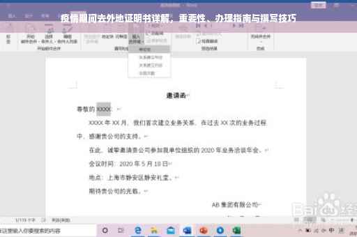 是本文关于疫情期间去外地证明书的重要性与办理指南的详细内容,共计1784字,希望广大市民在特殊时期能够关注疫情防控信息,正确办理相关手续,保障自身安全出行。