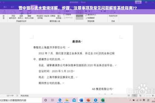 作为晋中地区的知名银行,晋中银行致力于为广大客户提供全方位的金融服务,银行流水是记录我们过去交易和收支情况的重要文件,本文将详细介绍晋中银行流水查询的步骤、注意事项以及解决常见问题的办法,希望能为您带来便利。