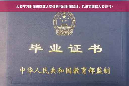 摘要:关于大专学习时间与获取大专证明书的时间,大专学制为三至四年,但获取大专证明书的时间取决于多个因素,如学习进度、学分完成情况以及学校规定等。通常情况下,学生完成所有课程学习和考试后,经过一定审核流程即可获得大专证明书。拿到大专证明书的时间可能在三到五年内。具体需结合个人学习情况与所在学校规定。