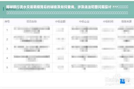 摘要:本文将揭示如何查询隐藏银行流水交易明细的秘密。通过简单易懂的方式,介绍如何查看银行交易记录,包括一些可能被忽略的细节。了解这些方法,不仅能帮助您更好地管理个人财务,还能确保资金安全。阅读本文,轻松掌握查询隐藏银行流水交易明细的技巧。