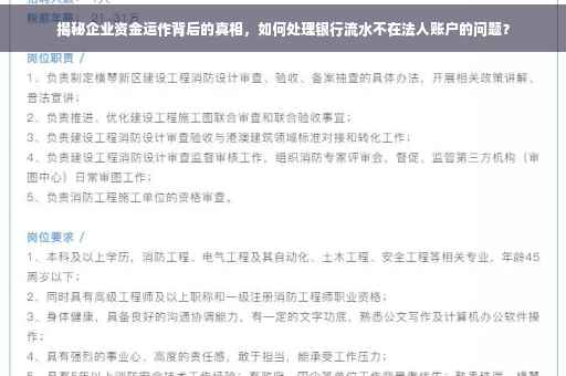 在探讨企业运营过程中,我们经常会遇到一个话题:银行流水,而当我们谈及银行流水时,往往会与法人账户相联系,但实际上,银行流水并不只存在于法人账户中,本文将围绕这一主题展开,深入剖析银行流水不在法人账户的种种情形,并探讨其背后的原因及影响。