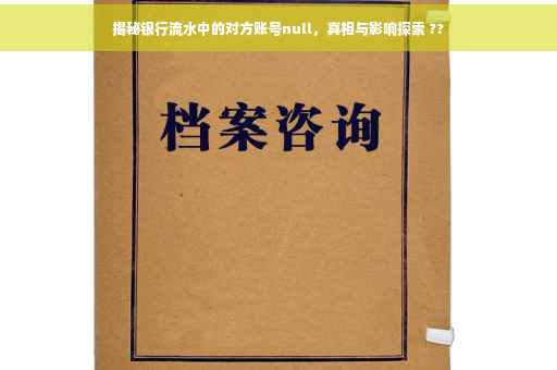 在日常生活中,银行流水作为记录个人或企业资金流动的关键文件,其真实性和详尽性尤为重要,有时,在查看银行流水时,我们可能会遇到对方账号显示为“null”的情况,这背后究竟隐藏着怎样的真相?本文将对这一现象进行深度解析,探讨其产生原因、可能带来的影响,以及应对策略。