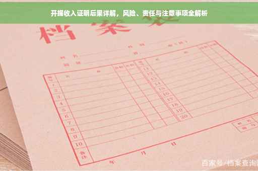 随着现代社会的发展,越来越多的人开始关注个人财务管理和信用建设,在这个过程中,收入证明作为一个重要的文件,被广泛应用于贷款申请、信用卡办理、房屋租赁等场景,开据收入证明并非一件轻松简单的事情,其中涉及到一系列的风险、责任和注意事项,本文将为您详细解析开据收入证明的后果,以帮助您更好地了解并做出明智的决策。