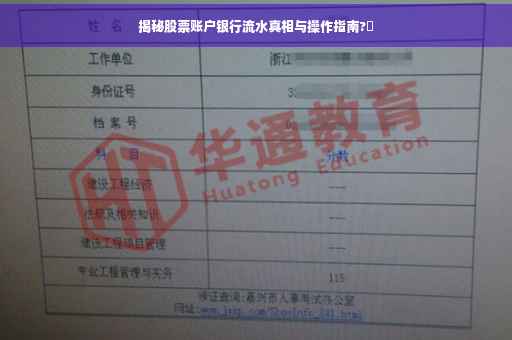 揭秘股票账户与银行流水背后的真相与操作指南。了解如何通过股票账户进行银行流水操作,掌握其中的技巧与注意事项。本文为您揭示这一过程的真实面目,助您规避风险,实现资产增值。阅读本文,助您明智决策。
