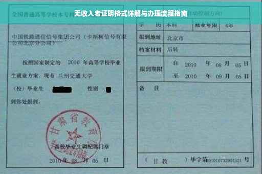 无收入者证明格式一般包括以下内容: