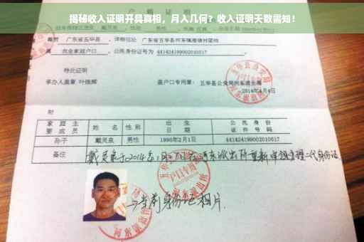 摘要:本文将探讨收入证明的重要性及其开具真相,同时关注月收入证明需要开具的时间长度。随着现代社会对个人经济状况的关注度不断提高,收入证明已成为个人信用评估的重要依据之一。本文将揭示收入证明开具的真相,让读者了解如何正确开具收入证明,并探讨需要多少天来完成这一过程。通过本文的阅读,读者可以更好地理解收入证明的重要性,以及如何正确有效地开具收入证明。