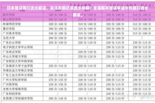摘要:日本签证申请中的银行流水要求全面解读。银行流水不仅关注余额,还需提供一定时期的银行交易记录,以证明申请人的经济状况和资金流动情况。申请人需确保流水账单真实、完整,展示稳定的收入来源。流水账单中的资金流动需合理,避免短时间内大量资金突然涌入或流出。正确准备银行流水有助于提高日本签证申请成功率。