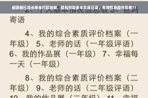 本文旨在为您提供关于邮政银行打印流水账单的详细介绍及相关注意事项,以便您更好地了解并享受邮政银行的金融服务,希望本文能为您的生活和事业带来便利,如想了解更多关于邮政银行或其他金融服务的信息,欢迎继续咨询。