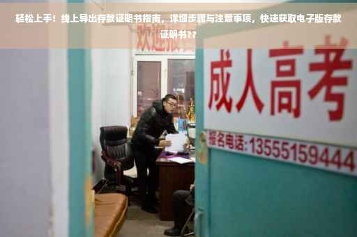 摘要:本文将详细介绍线上导出存款证明书的步骤与注意事项。通过简单的操作,即可轻松获得存款证明书电子版。本文将提供清晰的步骤,帮助读者顺利完成导出过程,并提醒注意事项,以确保导出证明书的准确性和安全性。阅读本文后,您将轻松掌握线上导出存款证明书的技巧。