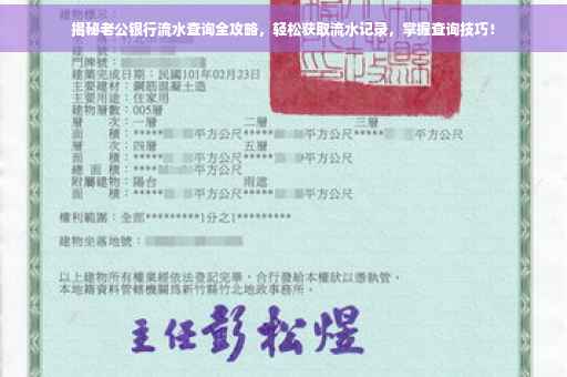 摘要:本文将为你揭秘如何查询老公的银行流水记录,教你轻松打出银行流水账单。通过简单几步操作,你将轻松掌握查询攻略,轻松获取银行流水记录。无论你需要核对家庭财务情况还是其他目的,这篇文章将为你提供实用方法和技巧。
