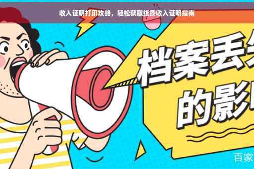 在现代社会,随着就业市场的日益竞争和人们对个人经济状况的重视,收入证明成为了越来越多场合的必备资料,无论是办理贷款、申请信用卡、租房还是其他场合,都需要提供收入证明来证实个人的经济能力,收入证明在哪里能打印到呢?本文将为您详细介绍收入证明的获取途径及注意事项。
