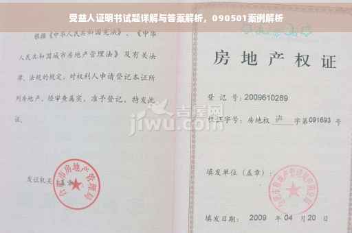 摘要:本文提供了受益人证明书的试题详解与解析,针对受益人证明090501的答案进行了详细阐述和解析,帮助读者更好地理解受益人证明书的相关要求和注意事项。通过本文的阅读,读者可以更好地掌握受益人证明书的相关知识和技巧,从而在实际应用中更加得心应手。
