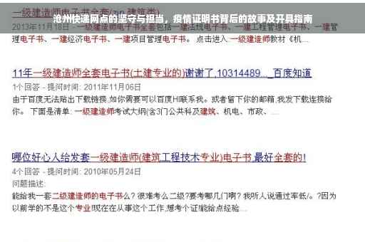 在新冠疫情这场突如其来的挑战中,各行各业都面临着巨大的压力和考验,快递行业作为现代社会运转的重要一环,其表现尤为引人注目,本文将聚焦于沧州网点快递在疫情期间的坚守与付出,通过一份疫情证明书,展现他们的担当精神。