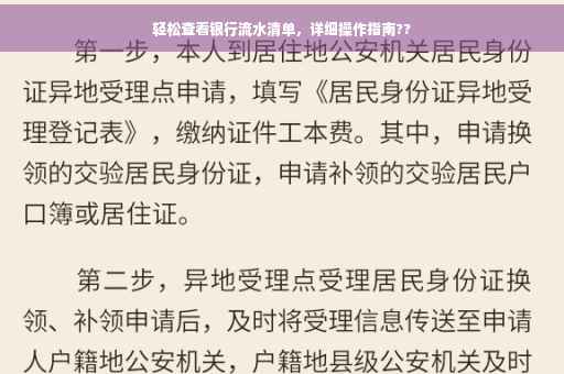 在现代社会,银行业务与我们的生活息息相关,有时候我们需要查看自己的银行流水清单,无论是为了核对收支情况,还是为了贷款、办理信用卡等需求,如何查看银行流水清单呢?本文将详细介绍几种常见的查看银行流水清单的方法,帮助您轻松完成操作。