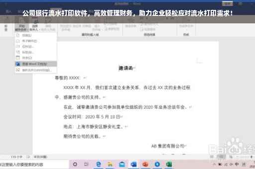 公司银行流水打印软件是一款功能强大、操作简便的财务管理工具,它能够帮助企业轻松管理财务,提高工作效率,实现更精准的财务管理,无论是企业主还是财务人员,都可以尝试使用这款软件,让财务管理工作变得更加轻松、高效。