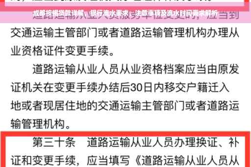 随着房地产市场的蓬勃发展,越来越多的人选择通过按揭贷款的方式实现购房梦想,在成都这座魅力四溢的城市,按揭贷款已成为广大市民安居乐业的重要金融工具,在申请按揭贷款的过程中,银行流水作为评估个人经济状况和还款能力的重要依据,扮演着至关重要的角色,本文将深入解析成都地区按揭贷款中银行流水的相关要求及注意事项,帮助借款人顺利获得贷款支持。