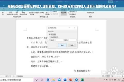 摘要:本文将揭示别人买房担保背后的收入证明真相,探讨如何撰写真实的收入证明以确保购房担保的有效性。本文将介绍收入证明的重要性、如何准备和提交相关证明材料,以及担保人在购房过程中的角色和责任。通过本文,读者将了解如何合法合规地证明自己的收入状况,为购房担保提供有力支持。