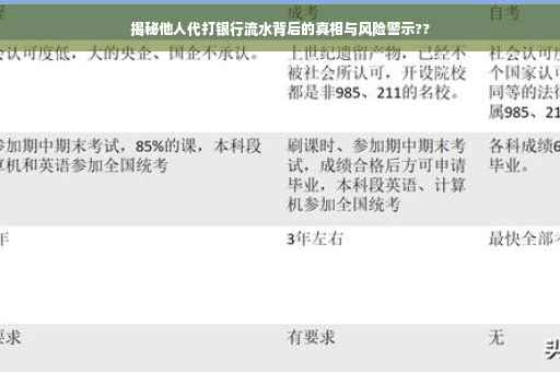 就是关于他人带打银行流水的真相揭秘与风险警示,希望广大市民能够引以为戒,增强风险意识,共同维护良好的金融环境。