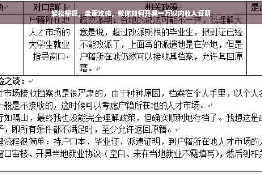 希望这篇关于一万以内收入证明的开具攻略能对您有所帮助,在办理业务时,请您准备好相关材料,遵循开具流程,注意相关事项,遇到问题时,不要慌张,及时寻求解决方案,祝您顺利办理业务!