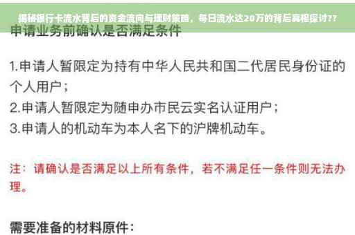 摘要:本文将探讨银行卡流水的重要性,揭示资金流向的秘密,并讨论理财策略。每天银行卡流水达到20万时,理财策略的选择将直接影响个人财务状况。通过合理的资金规划和管理,可以有效利用资金,实现财富增值。本文旨在帮助读者更好地理解银行卡流水的重要性,并制定相应的理财计划。