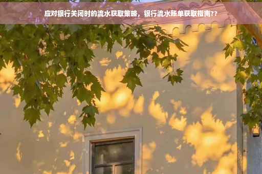 摘要:当银行关闭或面临问题时,获取流水账单可能变得困难,但并非不可能。可以通过前往银行任意营业网点、联系银行客服部门或网上银行等途径尝试获取。若银行确实无法提供,也不必过于担心,可采取保存交易凭证、记录交易细节等方式自行整理流水记录作为替代。面对银行关闭,保持冷静,根据实际情况选择合适的策略获取流水账单。