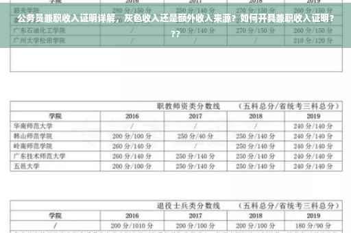 摘要:关于公务员兼职收入证明,其被认为是灰色地带还是额外收入来源一直存在争议。公务员若需开具兼职收入证明,应确保其合法性并遵循相关规定。开具证明时,需明确收入来源、金额及合法性,避免模糊地带,以确保个人职业声誉及法律合规。