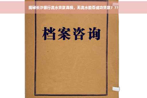 揭秘长沙银行流水贷款真相,没有流水能否在长沙银行成功贷款。本文将介绍长沙银行流水贷款的相关情况,探讨没有流水的情况下能否获得贷款,揭示银行对于贷款申请者的要求和流程,以及需要注意的风险点。让读者了解长沙银行流水贷款背后的真实情况,为需要贷款的人提供参考。