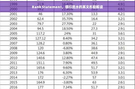 摘要:银行流水英文表达为Bank Statement,这是指银行交易记录的详细列表,通常用于证明个人或企业的资金流动情况。该词语在金融领域中具有重要地位,对于个人财务规划、贷款申请以及企业财务报表编制等方面都有着广泛的应用。