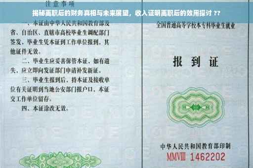 摘要:,,收入证明显示已离职,揭示离职后的财务真相。离职后的财务状况可能受到多种因素影响,包括收入减少、支出增加等。虽然收入证明在离职后可能无法继续作为在职证明使用,但它仍然可以作为个人财务状况的证明之一。未来展望需要根据个人情况制定,包括重新就业、创业或其他经济计划。建议离职后谨慎处理财务问题,合理规划未来经济生活。