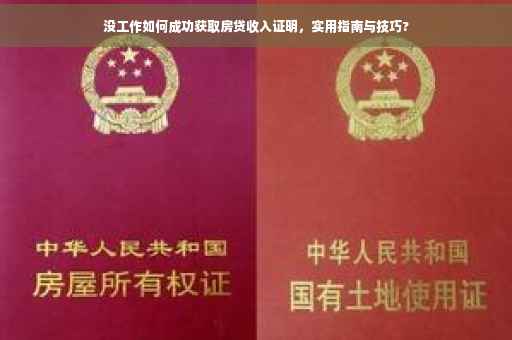 没有工作并不意味着无法获得房贷收入证明,通过提供其他收入来源证明、资产证明或寻求第三方担保,你仍有机会成功申请房贷,在申请过程中,请遵循以上建议,以确保顺利获得贷款。