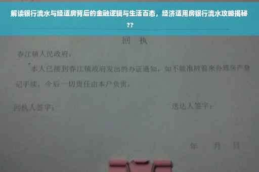 近年来,随着国家政策的不断调整,房地产市场逐渐进入平稳发展阶段,在这个过程中,银行流水与经适房的关系逐渐受到人们的关注,银行流水作为个人经济活动的直接体现,对于申请经适房等社会保障性住房具有重要影响,本文将深入探讨银行流水与经适房的关系,揭示背后的金融逻辑与生活百态。