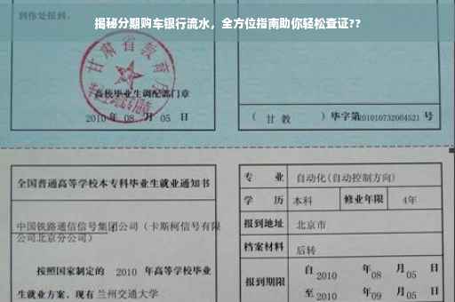在当今社会,汽车已成为人们生活中不可或缺的一部分,为了实现购车梦想,越来越多的人选择通过分期购车的方式来实现,而在申请分期购车时,银行流水作为评估个人信用的重要依据之一,其重要性不言而喻,本文将详细介绍分期购车银行流水的相关知识,帮助读者从入门到精通,顺利申请到心仪的贷款。