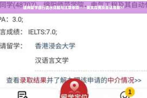 摘要:本文将详细介绍前往瑞典留学时,办理留学签证所需的银行流水材料及注意事项。文章指出,银行流水是证明个人经济能力的重要材料,需准备足够的资金证明。还需注意银行流水记录的真实性和完整性,确保无大额突然转入或转出。本文还将对如何正确整理和呈现银行流水材料给出建议,以帮助留学生顺利获得瑞典留学签证。
