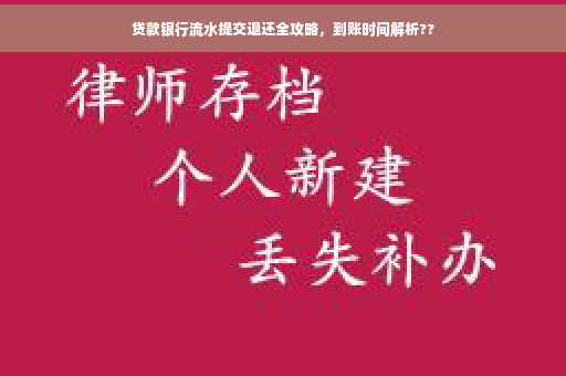 摘要:关于贷款银行流水提交退还的全程解析,重点在于提交退还后的到账时间。借款人提交贷款银行流水后,经过审核流程,一旦审核通过,退还流程启动。具体到账时间因银行处理效率而异,通常在数个工作日至一周内完成。本文旨在帮助借款人了解贷款银行流水提交退还的流程及到账时间,以便做好资金安排。