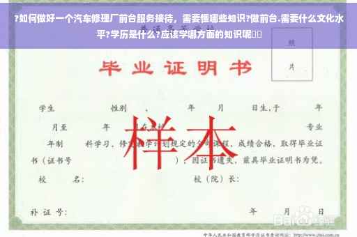 首先要懂得车辆的一些基本常识,要态度认真细致,善于倾听,善于专业引导:在检测诊断时,动作要熟练,诊断要明确,要显示我公司技术上的优越性权威性。
