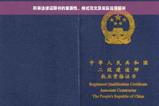 刑事法律证明书在司法实践中具有重要意义,我们应当深入了解其概念、种类、重要性及应用实例,正确使用刑事法律证明书,共同为构建法治社会贡献力量。