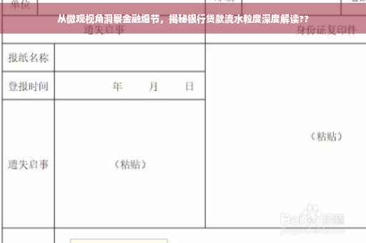 随着金融市场的快速发展,银行业务不断创新,贷款已成为人们解决资金需求的常见手段,在申请贷款过程中,银行流水作为评估个人信用和还款能力的重要依据之一,其重要性不言而喻,你是否了解过银行贷款流水的粒度?本文将带你从微观视角洞察金融细节,深入解析银行贷款流水粒度的内涵、作用以及影响因素,助你更好地了解银行流水,为你的贷款之路提供有力支持。