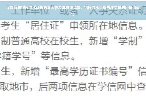 在现代社会,随着金融行业的快速发展,银行业务已成为人们日常生活中不可或缺的一部分,银行流水作为银行业务的重要记录之一,逐渐受到广泛关注,银行流水证据在多个领域发挥着重要作用,本文将从多个角度深度解析银行流水证据的重要性及其应用场景。
