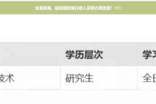 在了解需求和准备材料阶段,申请人需要明确自己的需求,包括收入证明的具体内容、用途等,并准备好相应的身份证明、工作证明和银行账户信息等材料,在前往银行并提交申请阶段,申请人需按照银行的要求填写申请表格,并注明收入证明的具体内容和用途,在等待审核阶段,申请人需保持耐心,并留意银行的通知,如有问题,及时与银行联系并解决,成功获得收入证明将有助于申请人在贷款、信用卡、签证等方面获得更多的便利和优势,通过不断的努力和实践,申请人将不断提升自己的能力和信心,并在未来的道路上取得更大的成功!