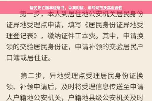 摘要:,,本文介绍了居民死亡医学证明书的重要性以及填写规范,其中包括中英文对照的内容。死亡医学证明书是证明居民死亡事实和原因的重要文件,对于逝者家属和医疗机构都具有重要意义。本文强调了正确填写死亡医学证明书的重要性,并提供了填写规范的指导,以确保信息的准确性和完整性。